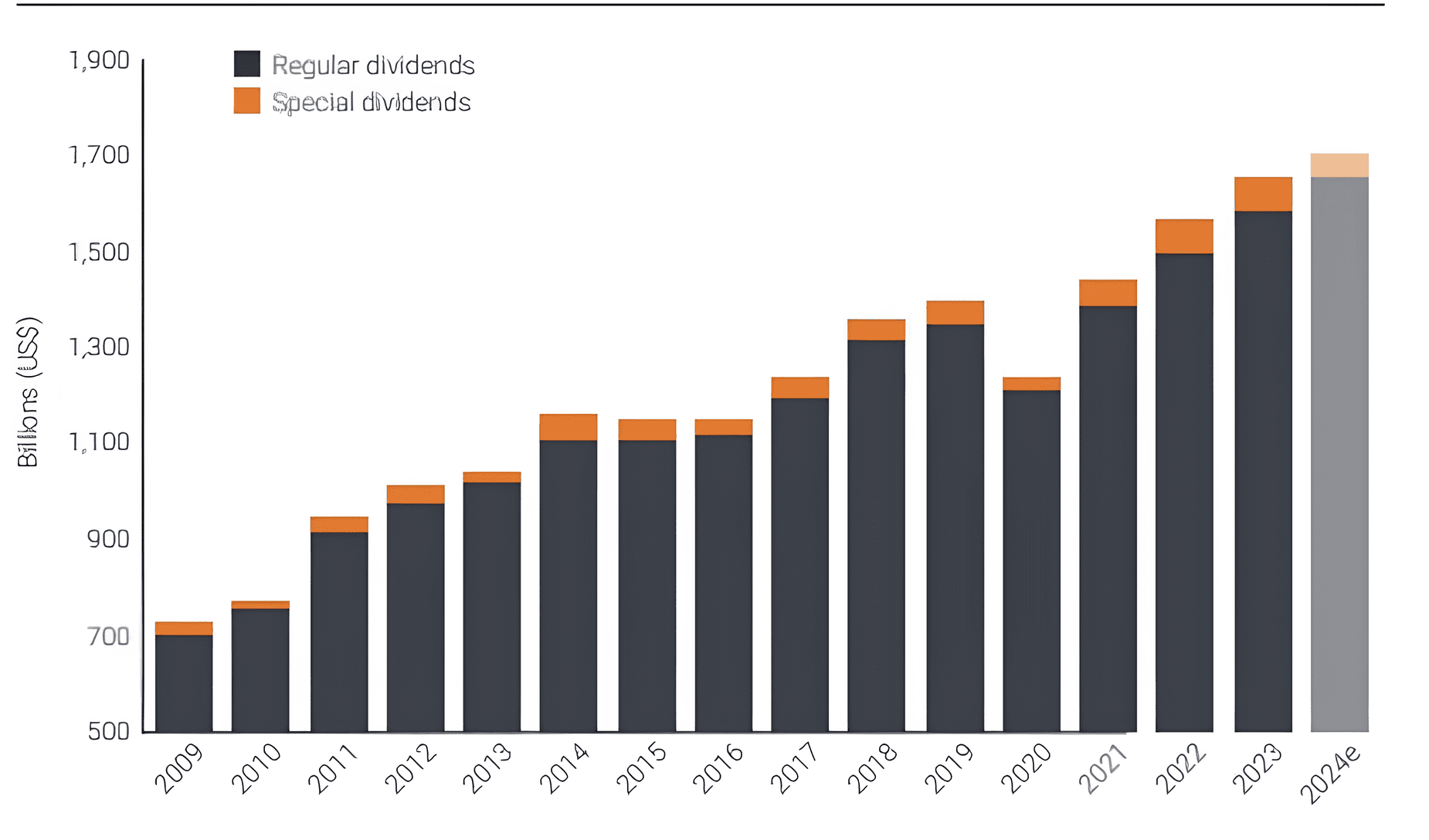 Celosvětově vyplacené dividendy vzrostly v roce 2023 o 5 % a celkový objem se vyšplhal na rekordních 1,66 bilionu dolarů.