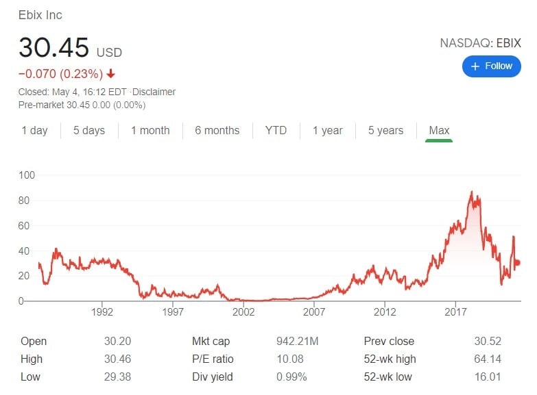 Ebix se musela jako většina společností potýkat s dopady pandemie koronaviru, díky kterým poklesly její výnosy během prvního a druhého čtvrtletí meziročně o 25 %. Ve třetím čtvrtletí se ale začalo společnosti dařit a její výnosy vzrostly o 4,72 % na 154 milionů dolarů. P/E jejích akcií je v současnosti na 10.