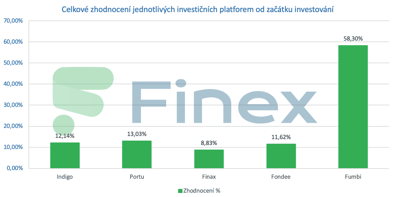 Do čela se aktuálně dostalo Portu, za kterým následuje nedávný lídr Indigo. V těsném závěsu však následuje i Fondee a pouze slovenská investiční platforma Finax vykazuje drobnou ztrátu.
