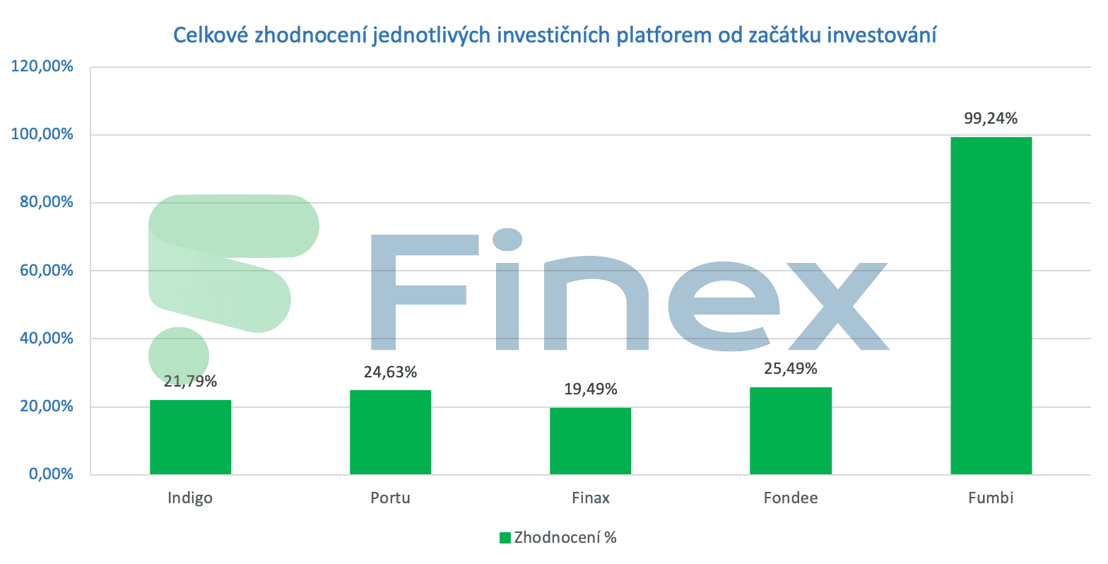 Z pohledu srovnání investičních platforem se tentokrát pořadí neproměnilo. Z hlediska zhodnocení investičních prostředků suverénně vede platforma Fumbi.