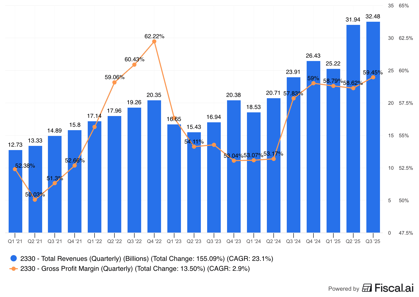 “Mýtná brána” celého polovodičového světa: Když roste poptávka po moderních čipech (telefony, datová centra, umělá inteligence), TSMC je přímo u zdroje tržeb.