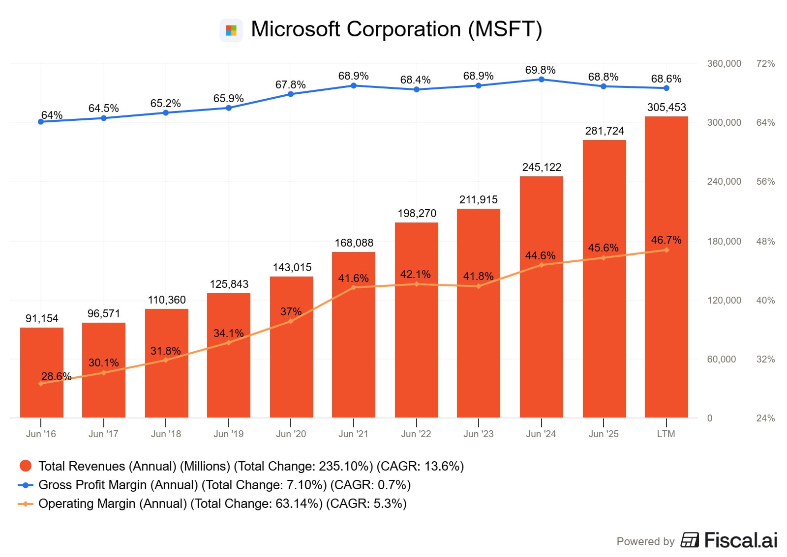 Firma vykazuje stabilní růst tržeb, které za posledních 10 let vzrostly z přibližně 91 miliard dolarů na více než 305 miliard dolarů.