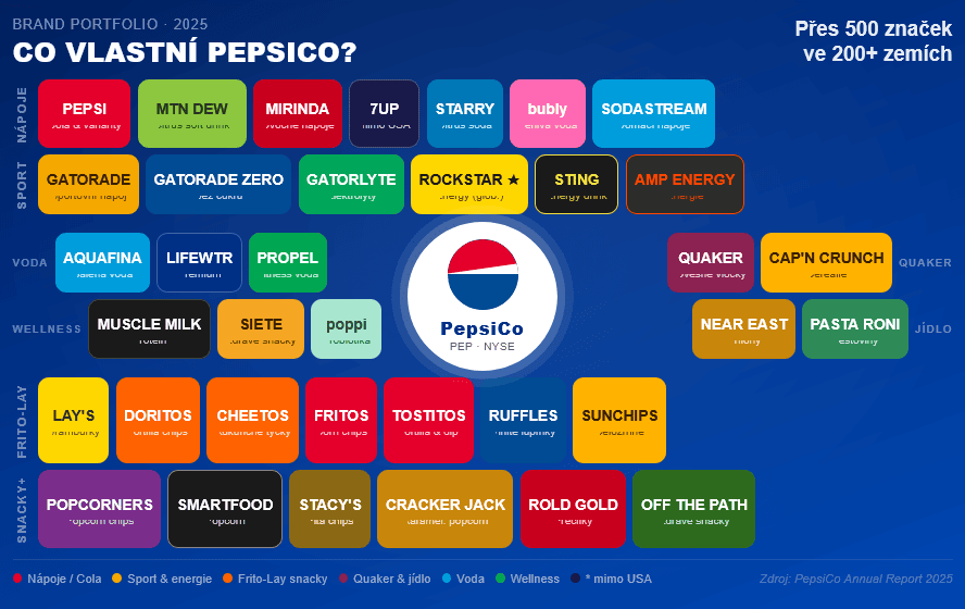 Klíčové značky vlastněné PepsiCo k 2025.