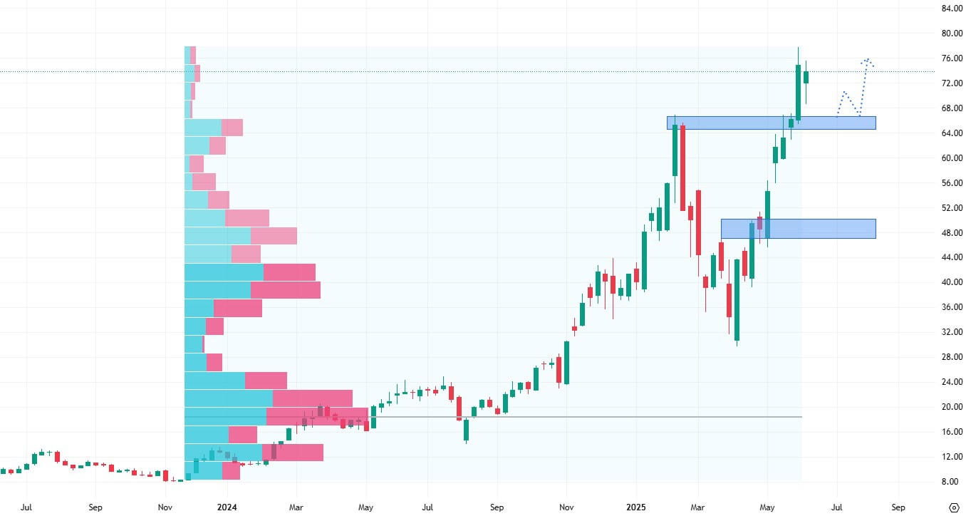 Akcie Robinhood se obchodují v agresivním up trendu a v současné době se nacházejí těsně pod svými historickými cenovými maximy.