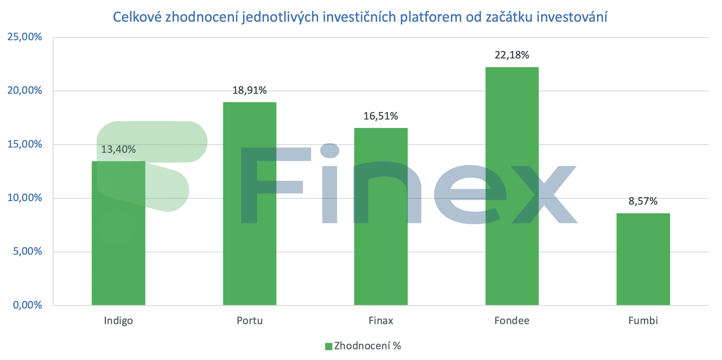 Celkové zhodnocení jednotlivých investičních platforem od začátku investování