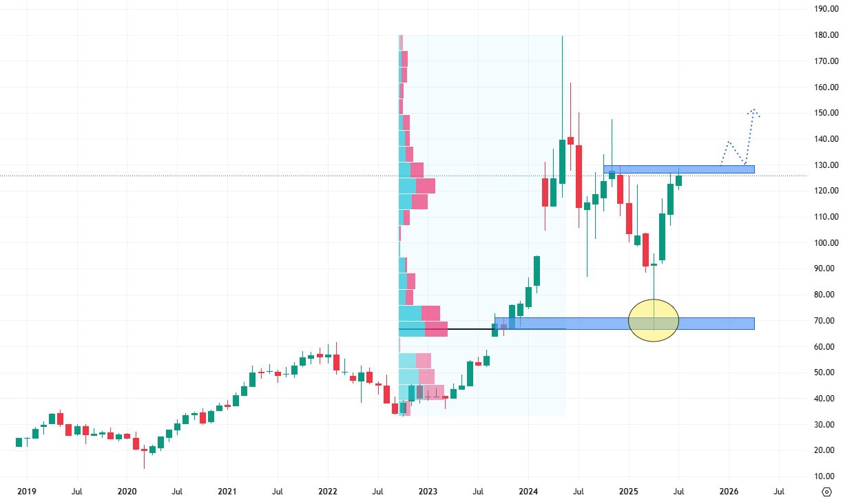 Pokud v trhu bude i nadále převládat toto pozitivní momentum, je pravděpodobné, že akcie rezistenci prorazí. V takovém případě by se jim otevřela cesta k návratu na jejich předchozí cenová maxima.
