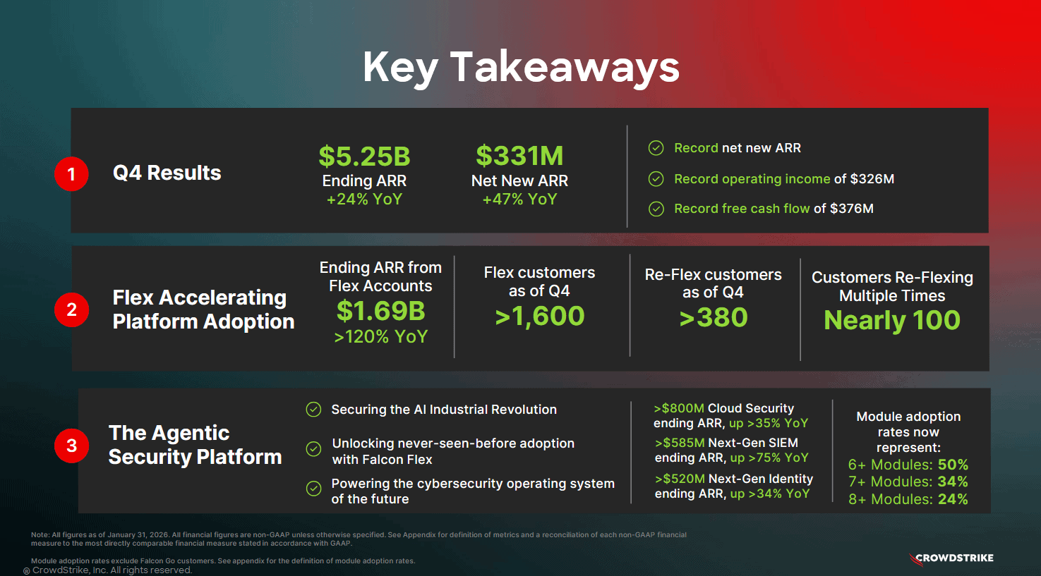 Klíčové výsledky CrowdStriku za Q4 2025.