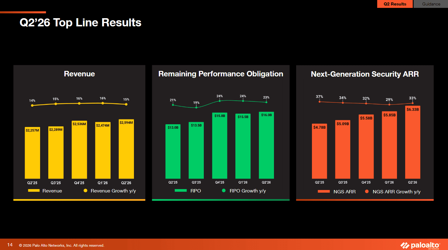 Výsledky Palo Alto Networks za fiskální Q2 2025.