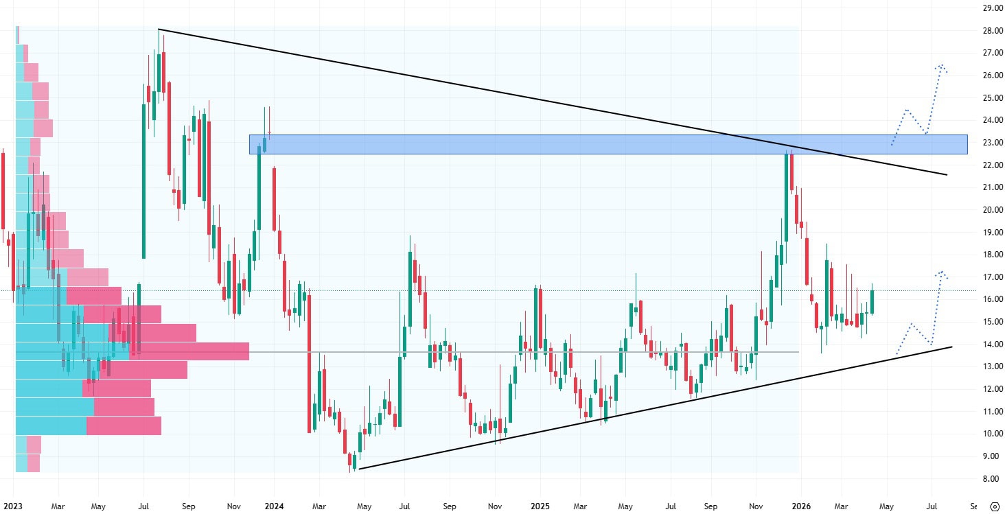 Případný průraz nad cenové maximum kolem 21 USD by pak otevřel dveře k dalšímu, mnohem výraznějšímu růstu.