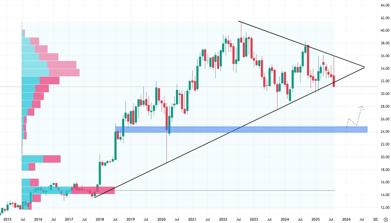Pokud by se tak stalo, akciím se otevře zajímavá cesta k růstu s minimálním potenciálem do oblasti cenového výběžku okolo 50 USD za akcii.