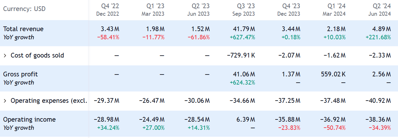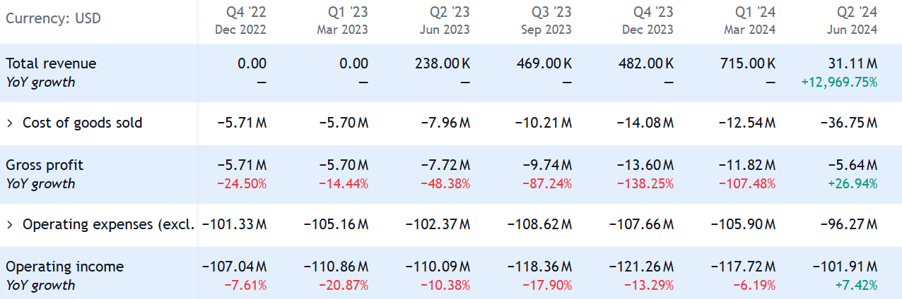 Ve druhém čtvrtletí měla společnost v hotovosti, ekvivalentech a krátkodobých investicích více než 1,2 miliardy dolarů, přičemž celkové čtvrtletní provozní náklady činily jen 42,1 milionu dolarů, což se projevuje na hodnotě akcií.