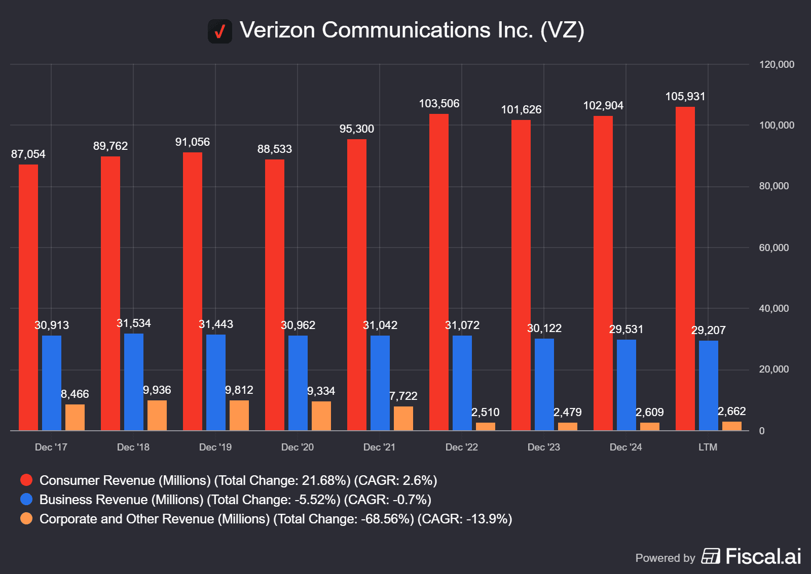 Verizon se naopak těší stabilnímu příjmu z mobilních služeb a potenciálu růstu díky rozvoji 5G a budoucích 6G technologií.