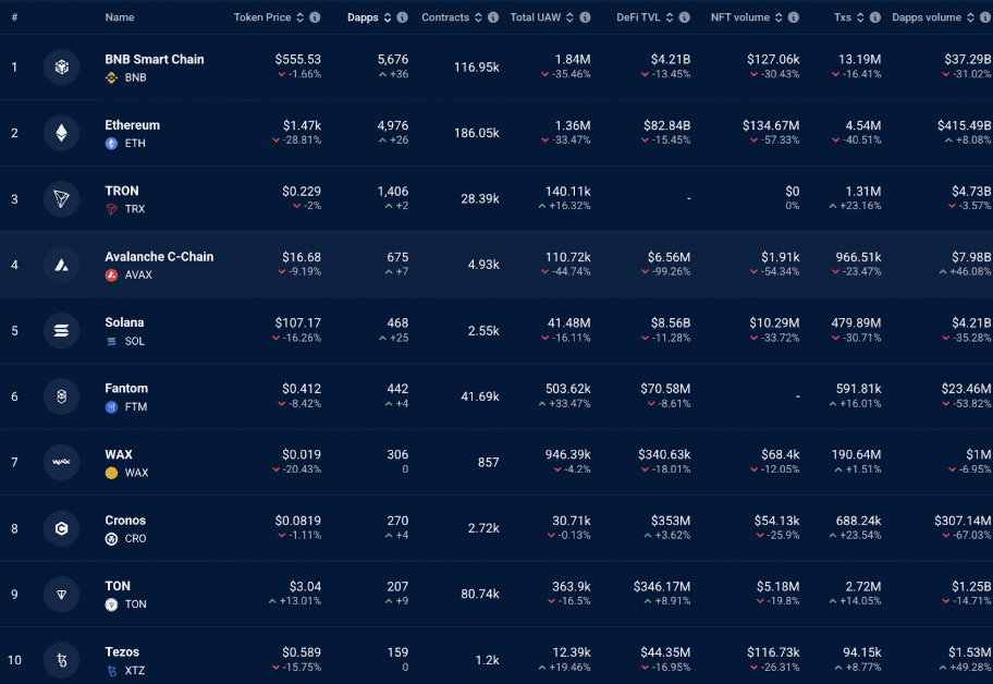 Top blockchainy seřazené dle objemů na DApps