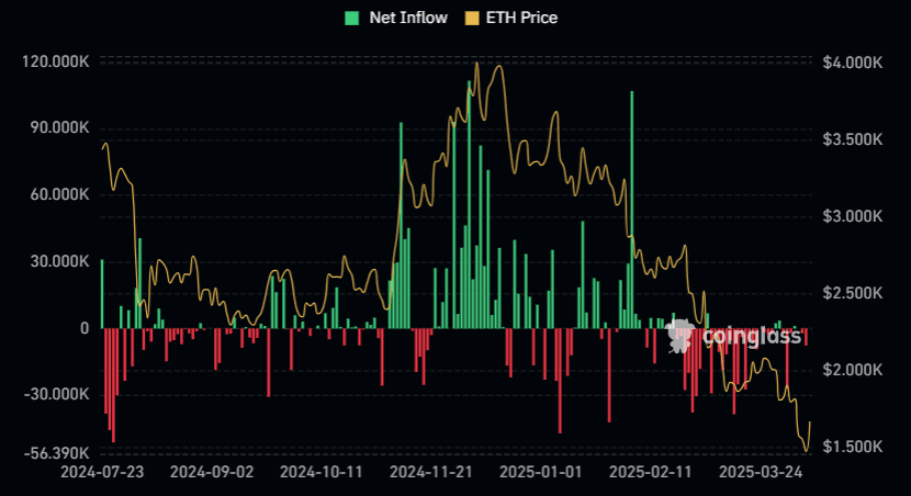Ethereum prudce klesá, protože investoři vybírají miliony dolarů z ETF a derivátové trhy signalizují negativní sentiment. Existuje vůbec naděje na zotavení jeho ceny?