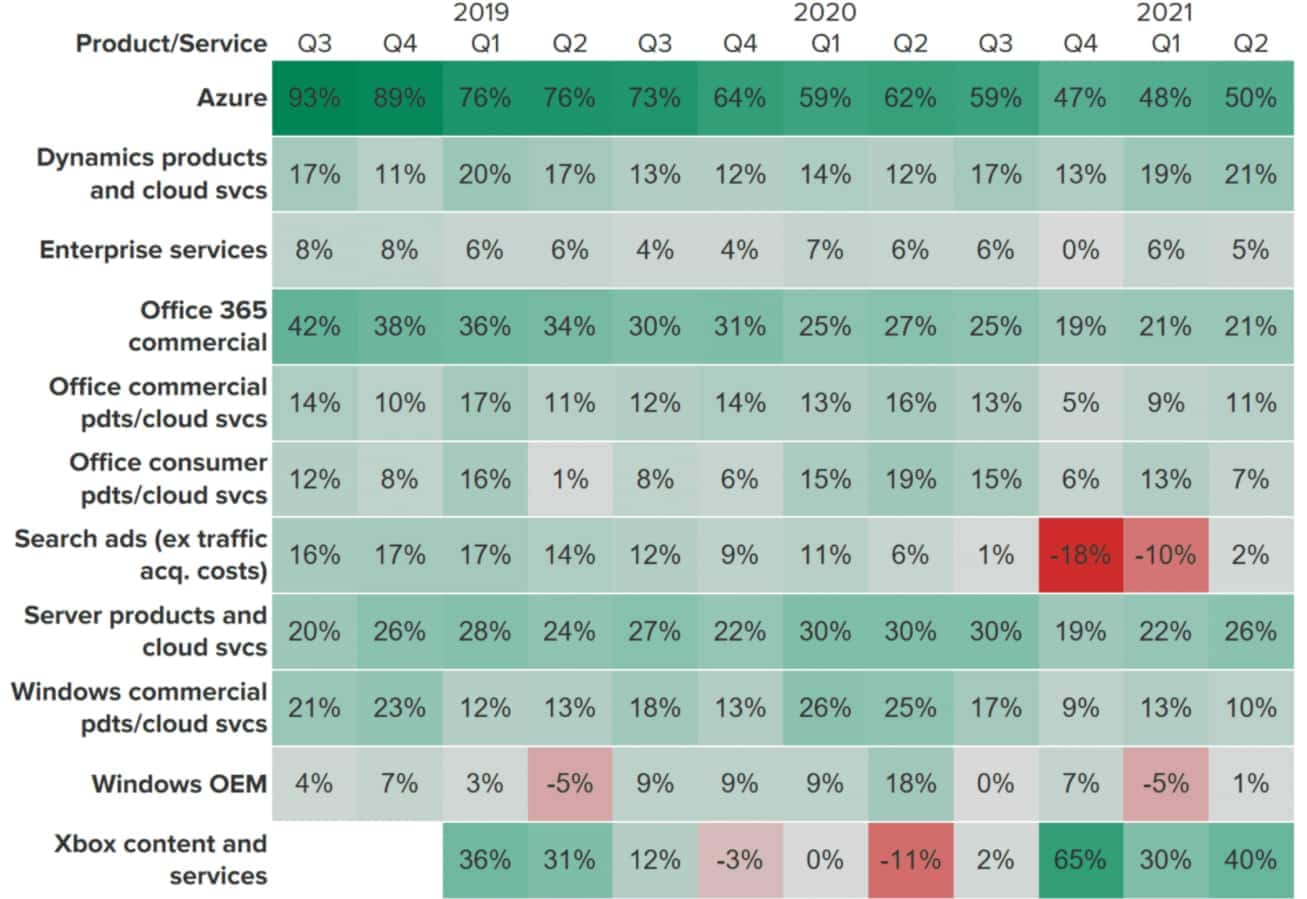 Díky silnému výkonu v téměř všech segmentech podnikání byl růst tržeb Microsoftu v posledních letech velmi působivý.
