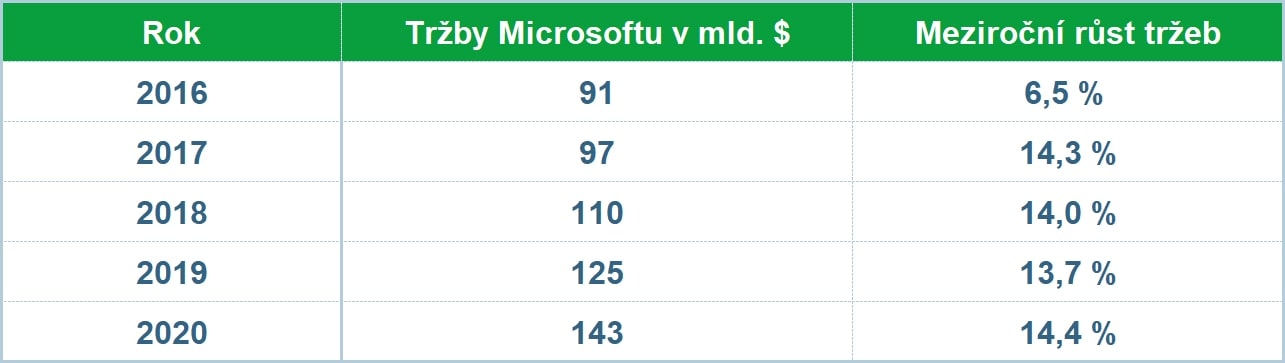 Celkové tržby Microsoftu v posledních 5 letech. Zdroj: Macrotrends.net