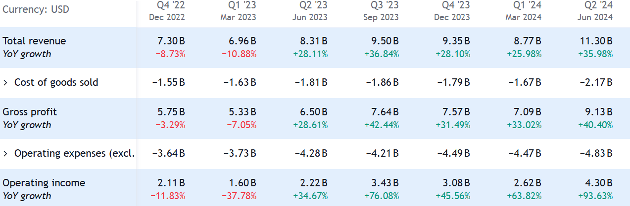 Celkově tržby ve 2.čtvrtletí rostly o 35,9 % a provozní zisk meziročně vyrostl o 93,6 %.