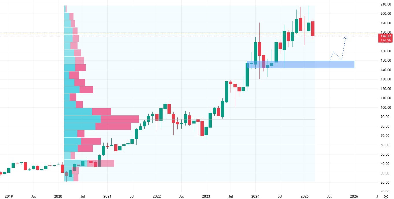 Akcie Palo Alto Networks se obchodují téměř na svých cenových maximech s tím, že nejbližší support se nachází poměrně blízko a to na ceně 150 USD za akcii. To by mohlo vyústit v pullback akcií a v jejich následný růst.