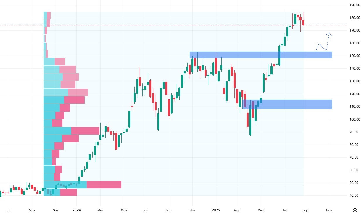 Ten se nachází na hodnotě proražených předchozích maxim okolo ceny 150 USD za akcii. Pokles ceny akcií pod tento support by byl ovšem pro jejich dlouhodobější vývoj velmi negativní.
