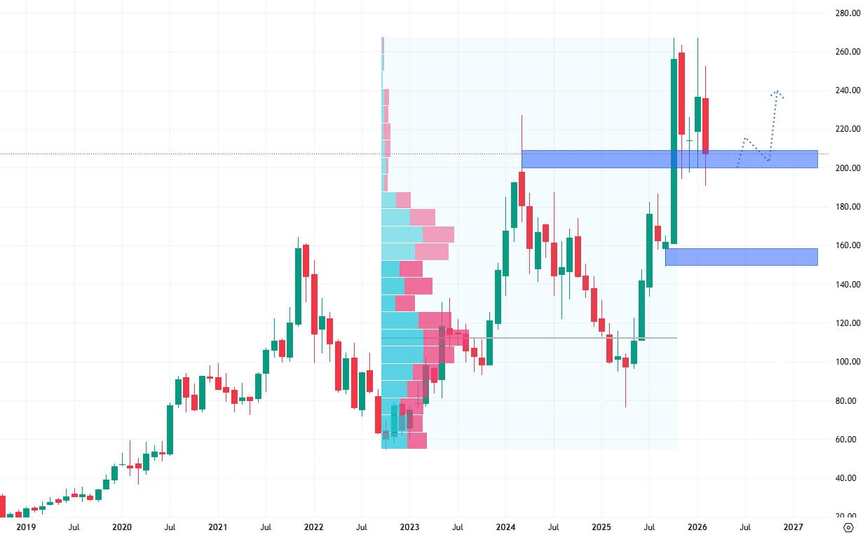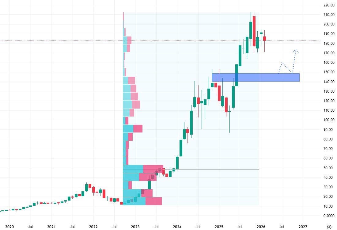 Tato společnost vykázala meziroční růst tržeb o 65,22 % a růstový trend by měl pokračovat i v dalších letech. Pro rok 2026 se očekává posílení na 213,56 miliardy USD a v roce 2027 by tržby měly atakovat hranici 326,50 miliardy USD.