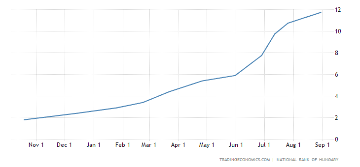 Vývoj úrokových sazeb v Maďarsku za poslední rok