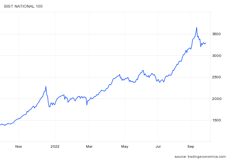 Co je s podivem, tak index turecké burzy roste i přes tak silnou inflaci. Důvodem je fenomén, který se nazývá útěk před hotovostí. Právě v době vysoké inflace se vám absolutně nevyplatí držet hotovost. V tom případě roste poptávka po všech finančních aktivech od akcií přes zlato po kryptoměny. Vše je lepší než hotovost.