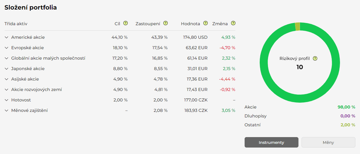 Aktuální zhodnocení/ztráta jednotlivých složek portfolia na příkladu Portu