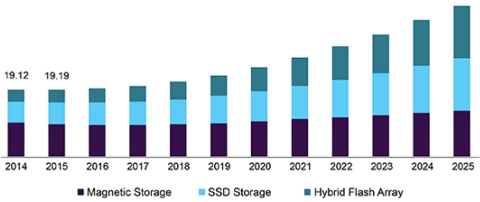 Před pandemií jsme byli svědky poměrně stabilního přesunu podnikových a spotřebitelských dat do cloudu. Od začátku pandemie probíhá v cloudu stále více transakcí, projektů, spolupráce a inovací než kdykoli předtím. Na základě zprávy společnosti Grand View Research se očekává, že trh s úložišti nové generace poroste v letech 2019 až 2025 v průměru o 12,5 % ročně.