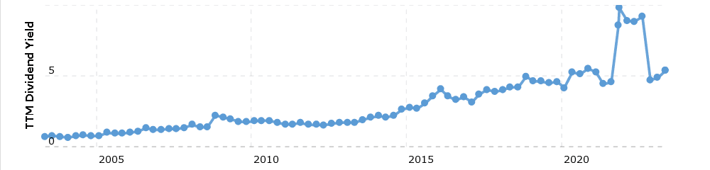 Možná se divíte, proč jsem do našeho výčtu zařadil i akcie Microsoft. Dovolil bych si tvrdit, že málokdo ví, že společnost Microsoft vyplácí dividendu. V současnosti jenom okolo 1 %. Ale není tomu tak vždy. Takřka dekádu Microsoft svým akcionářům vyplácel dividendový výnos v rozpětí 2 -3 %. Což není vůbec málo. Přitom Microsoft je primárně růstový titul, který se dokáže během několika let zhodnotit i o stovky %.