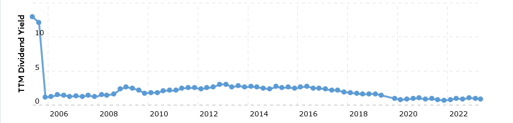 V současnosti činí dividendový výnos tohoto titulu zhruba 3 %.