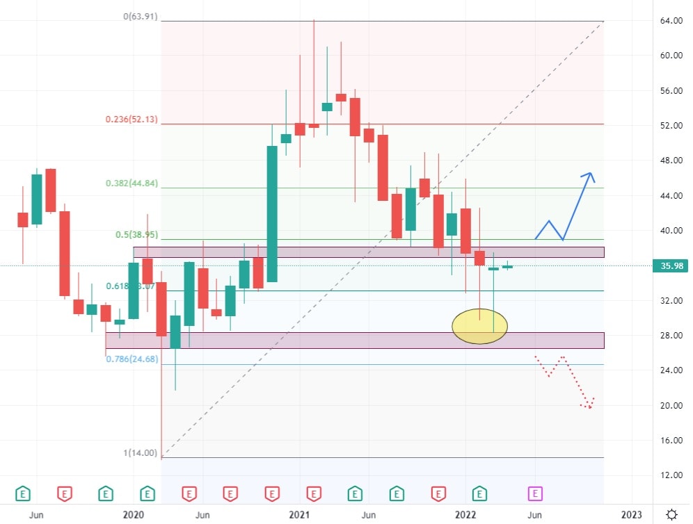 Akcie Uber na cenovém grafy vytvořily zajímavou svíčku, zvanou Pin Bar, která se v rámci technické analýzyvyužívá jako obratová formace. Pomocí této svíčky akcie reagovaly na supportní zónu na ceně 28 USD. Pokud bude nákupní reakce pokrčovat a trh se dostane nad 40 USD, je pravděpodobný i další růst. Uber vykázal meziroční nárůst zisků o 56,7 % a analytici očekávají růst tržeb v roce 2022 na 27,1 miliardy USD, což je poměrně značný skok, ze současných 17,46 miliardy USD. Společnost poskytuje služby nezávislým dopravcům a provozuje aplikace pro vyhledávání spolujízdy.