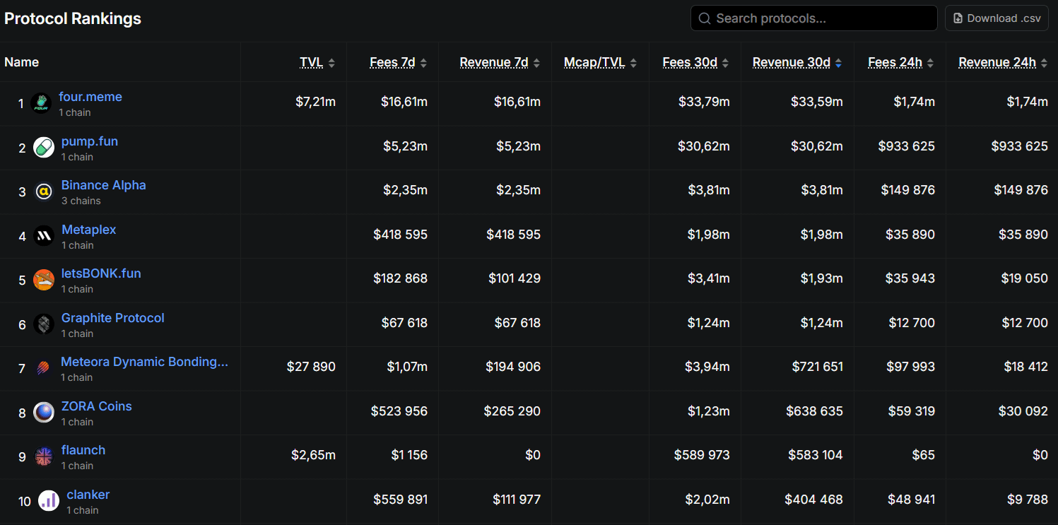 Mezi nejpoužívanější launchpady se nyní řadí four.meme, pump.fun nebo Binance Alpha.