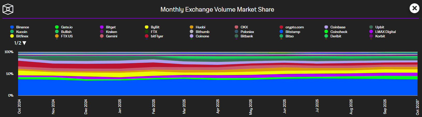 Mezi krále centralizovaných burz se pak řadí Binance, Coinbase, Kraken nebo OKX. Tyto platformy totiž dominují spotovému trhu s obchodováním kryptoměn a dohromady mají přes 56% podíl na trhu.