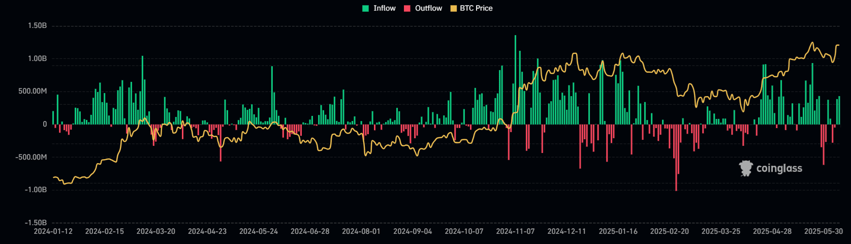 Vývoj peněžních toků v rámci Bitcoin ETF