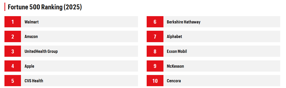 Top 10 firem ze žebříčku Fortune 500