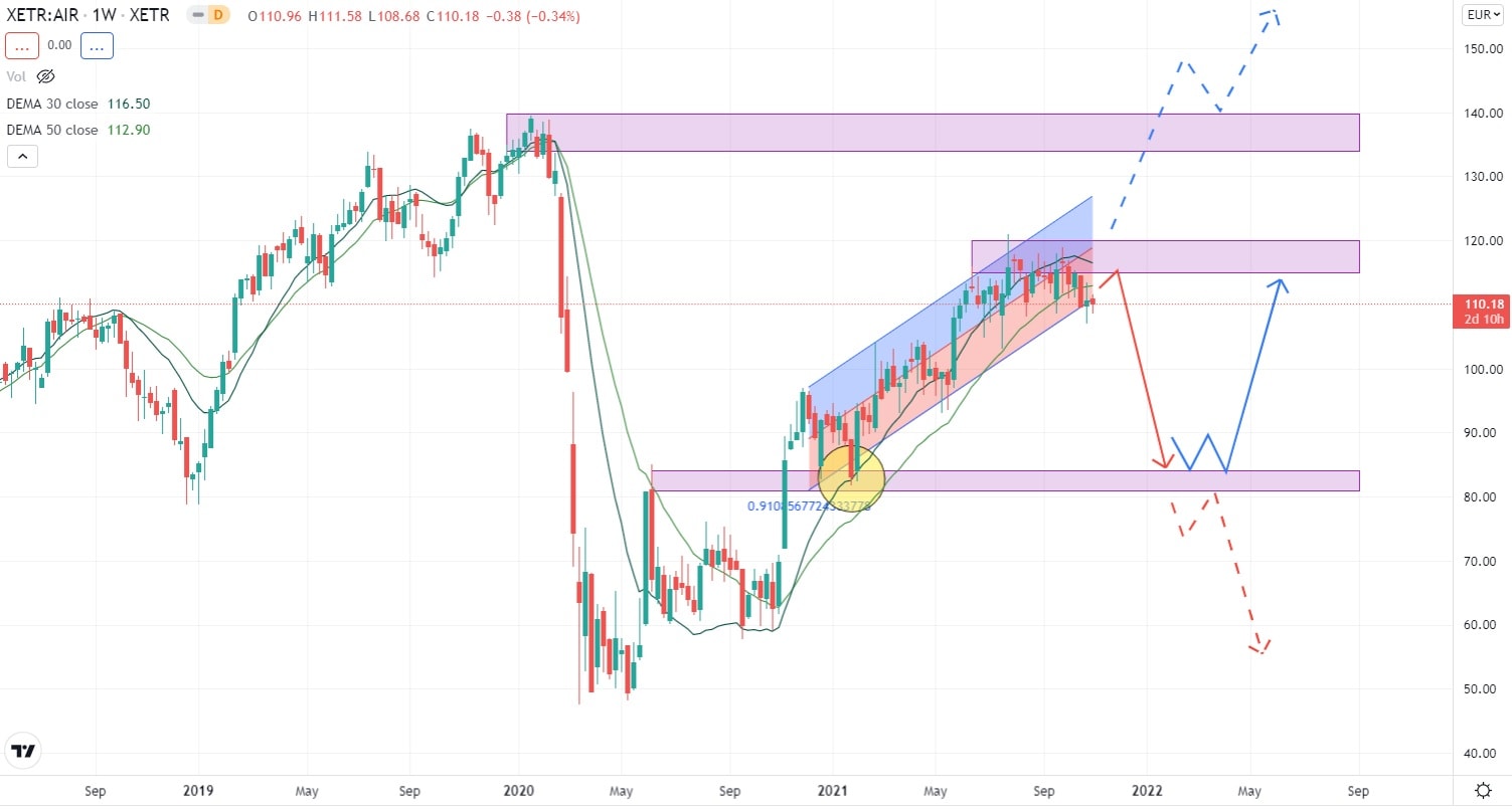 Budoucí cenový vývoj akcií společnosti Airbus AG bude záviset na fundamentálních zprávách, především z oblasti civilní vzdušné dopravy, který by se mohl zcela obnovit před začátkem nové turistické sezóny roku 2022.