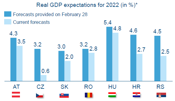 Mne osobně hodně zaujala ta makroekonomická prognóza Erste Group Bank. Ze střední Evropy nás totiž dle prognózy čeká vůbec nejhorší průběh výstupu ekonomiky za celý rok 2022.