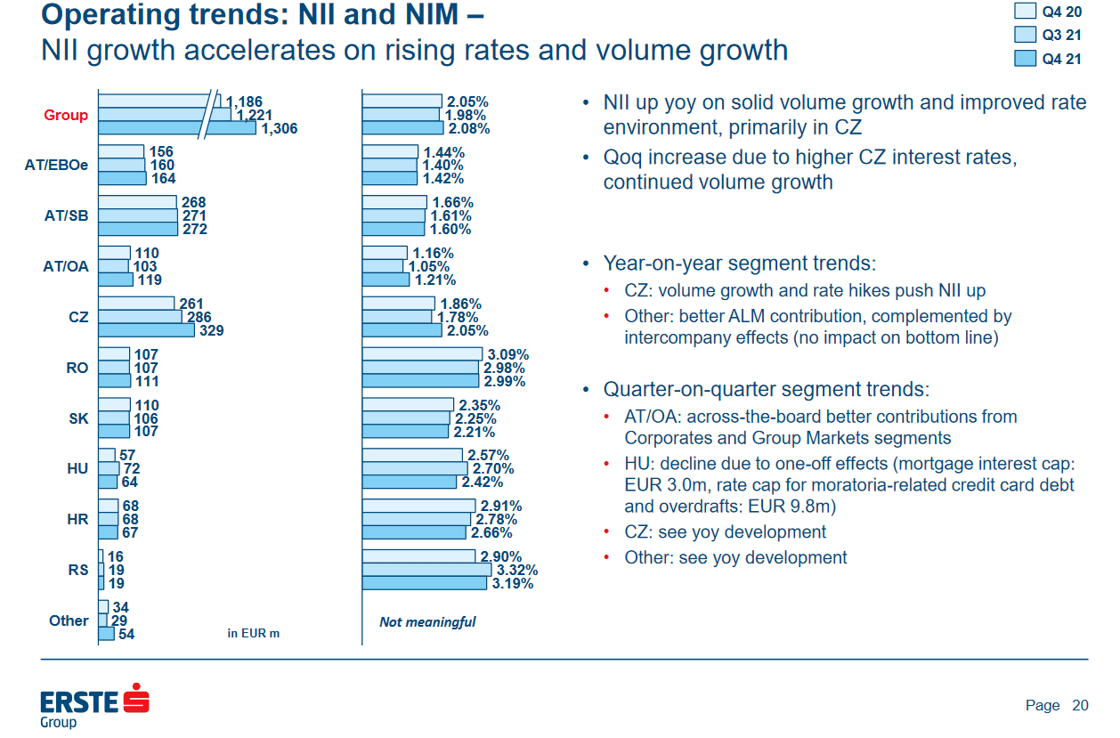 Co se týká celého roku 2021, čisté úrokovévýnosy dosahovaly 4,975 miliardy EUR, což znamená meziroční růst asi o 4,2 %.