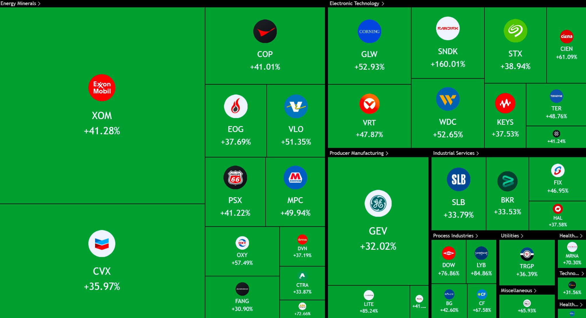Nejlépe si vedou výrobci pamětí, firmy spojené s optickými vlákny a také energetický sektor.