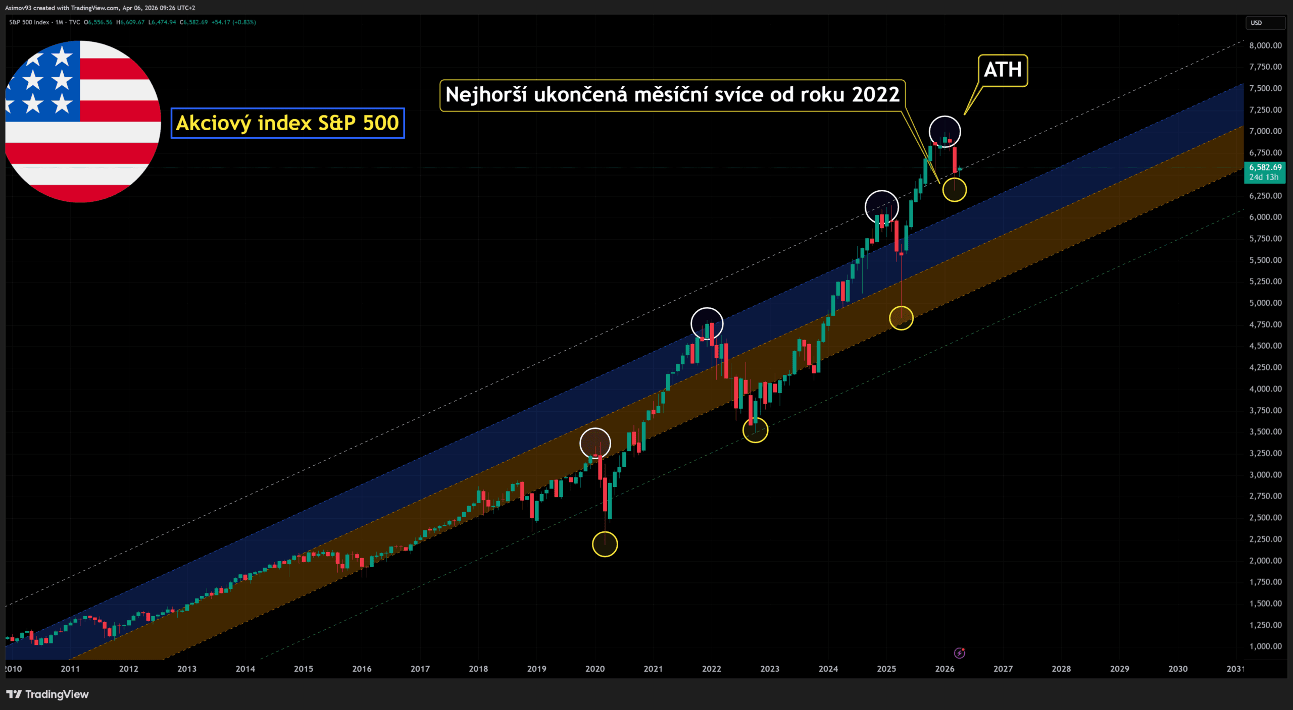 Akciový index S&P 500 má za sebou nejhorší ukončenou měsíční svíci od roku 2022