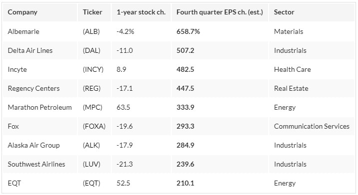 9 společností s nejvyšším předpokládaným růstem EPS v Q4 2022