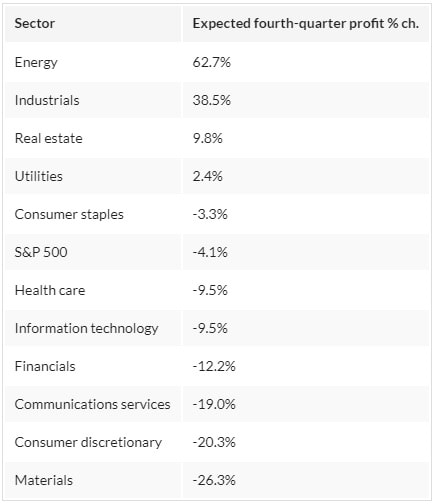 Snížení kvartální predikce zisků u společností v indexu S&P 500 je nejvyšší od roku 2020. Na vině je především strach z možné recese, na jejíž hraně se ekonomika pohybuje od poloviny loňského roku, kdy akciový index S&P 500 vykazoval pokles 25 %. Analytici také snižují prognózy zisků pro všechny akciové segmenty, kromě energetického, který by v Q4 2022 měl vykázat růst zisků téměř 63 %.