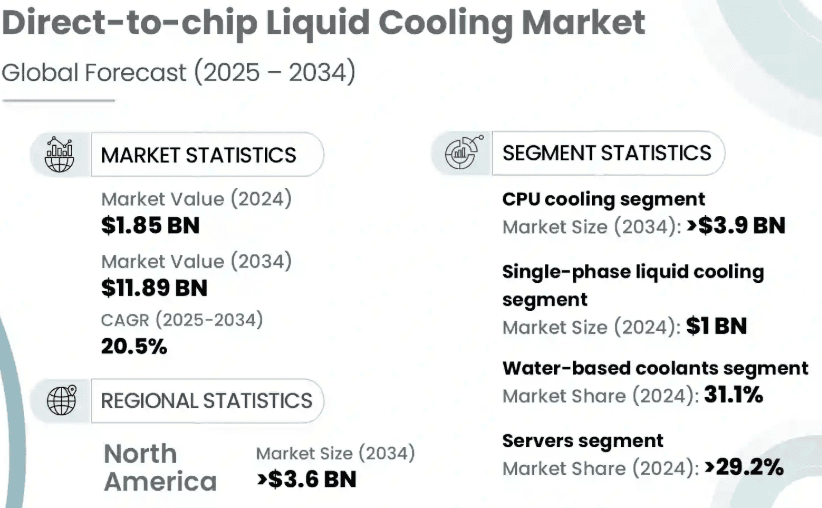 Vývoj trhu s technologií kapalinového chlazení přímo na čip
