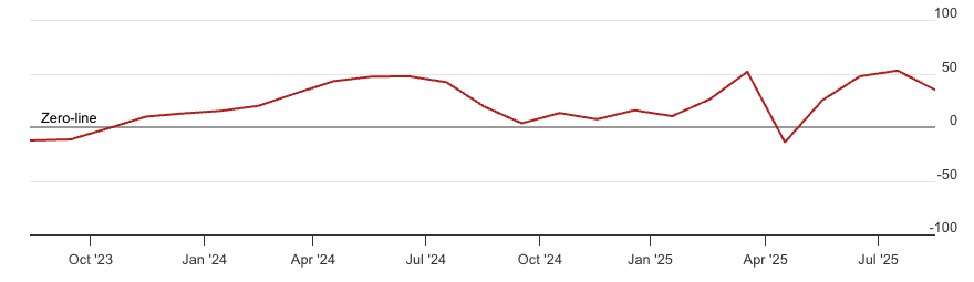 Vývoj indexu ekonomického sentimentu ZEW za poslední 2 roky
