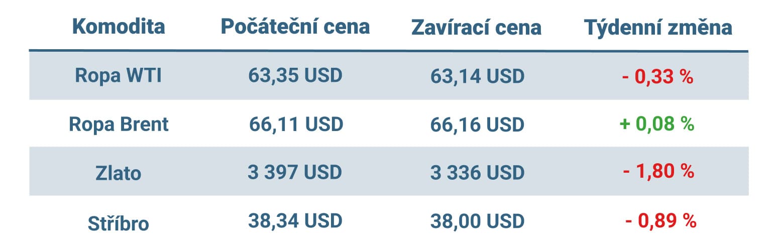 Vývoj ceny nejvýznamnějších komodit v tomto týdnu