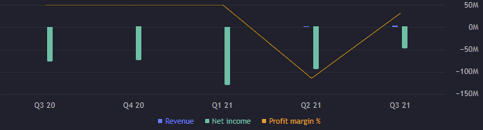 Co se týká výnosů, druhý kvartál zaznamenal pouhých 571 tisíc USD, ale za třetí má Virgin Galactic 2,58 milionů USD. Firma zaznamenala ztrátu 48,37 milionů USD, takže marže jsou též záporné. EBITDA je -80 milionů USD. Cash flow je očekávaně též záporné, -53 milionů USD.