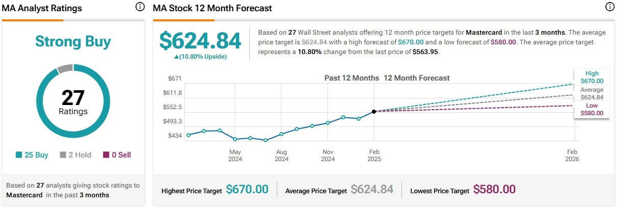 Akcie Mastercard rovněž velmi agresivně rostou a podle analytiků by i v roce 2025 měl tento trend pokračovat.