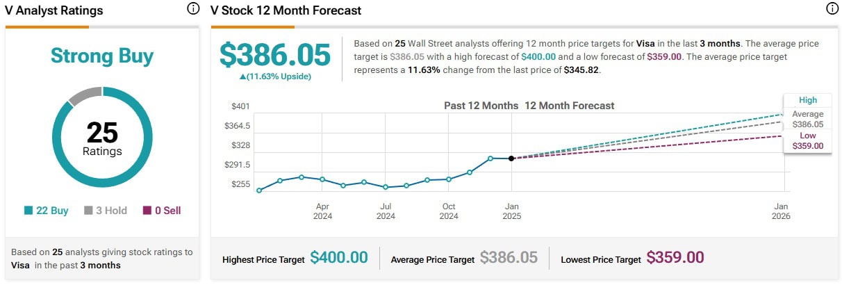 Cenové predikce pro tyto akcie se účastnilo celkem 25 analytiků z Wall Street, přičemž 22 z nich doporučuje akcie Visa nyní nakoupit.