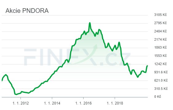 Pokles byl několikrát přerušen krátkými růsty, ale cena nakonec spadla až k hodnotě 220 dánských korun v červnu 2019. Od této ceny se odrazila a začala pomalu růst. Aktuálně se cena akcií Pandory pohybuje okolo 300 – 350 DKK..