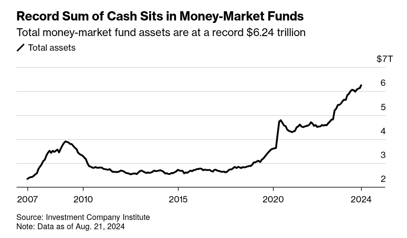 Dle posledních dat je v peněžním trhu již více jak 6,24 bilionů dolarů, což jsou historické rekordy. Ještě před dvěma roky to bylo pouze něco přes 5 bilionů dolarů. Tudíž je po těchto nástrojích vskutku silná poptávka.